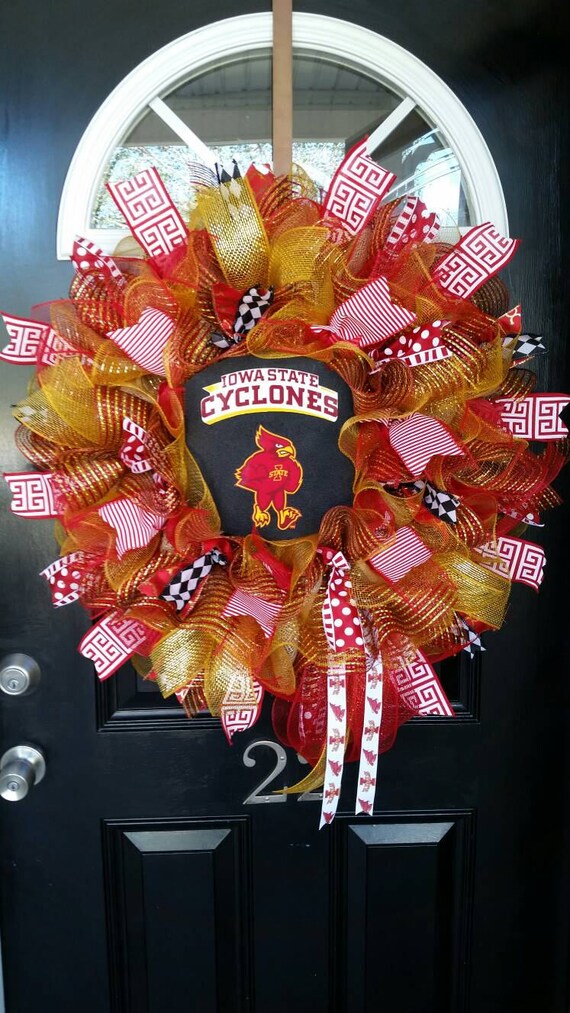 Iowa State Burlap Wreath Mesh Ribbon Wreath Iowa State Etsy