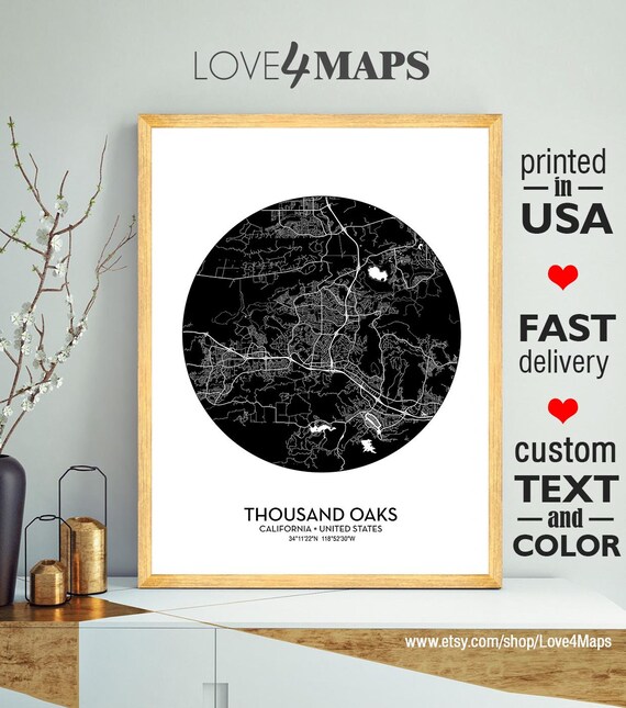 Thousand Oaks Map Print Poster Thousand Oaks City California Etsy
