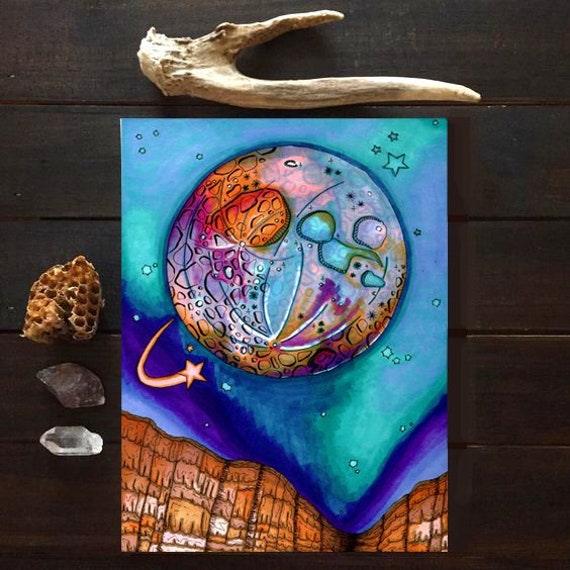 Original Full Moon Galaxy Art Canyon Moon Decor Gift For Her Etsy