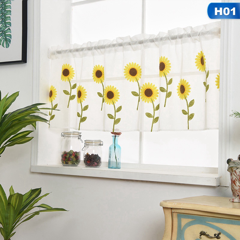 Kaboer 1pc Half Curtain Short Coffee Net Daisy Embroidery Kitchen