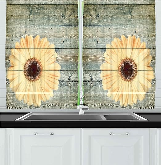 Amazon Com Ambesonne Floral Kitchen Curtains Rustic Wooden