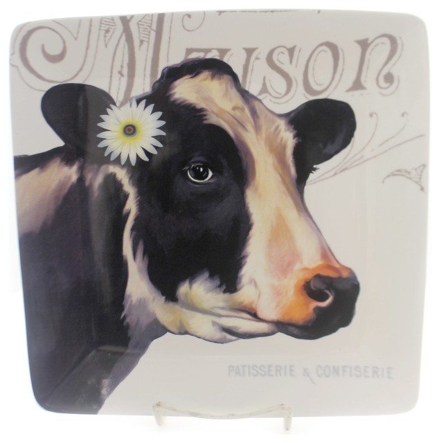 Home Decor Stoneware Plate Stone Handmade Da8433a Cow Farmhouse