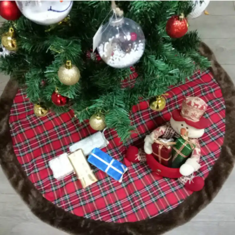 1pc Dark Red Plaid Christmas Tree Skirts Tree Foot Carpet Mat