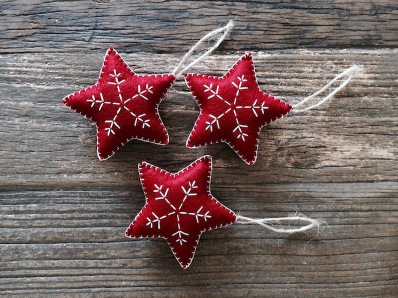 3x Dark Red Nordic Scandi Style Christmas Star Decorations Etsy