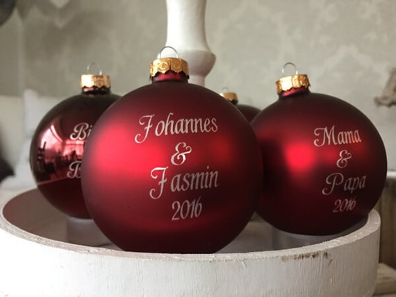 4 Christmas Tree Balls Dark Red 8 Cm With Engraving Etsy
