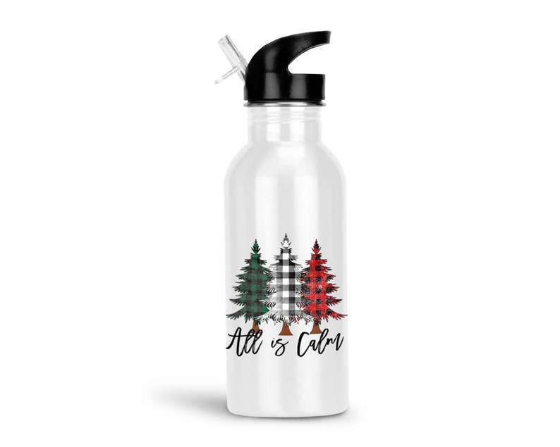 Christmas Water Bottle With Straw All Is Calm Plaid Christmas Etsy