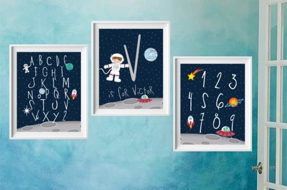 Space Theme Nursery Wall Decor 3 Piece Wall Art Outer Space Etsy