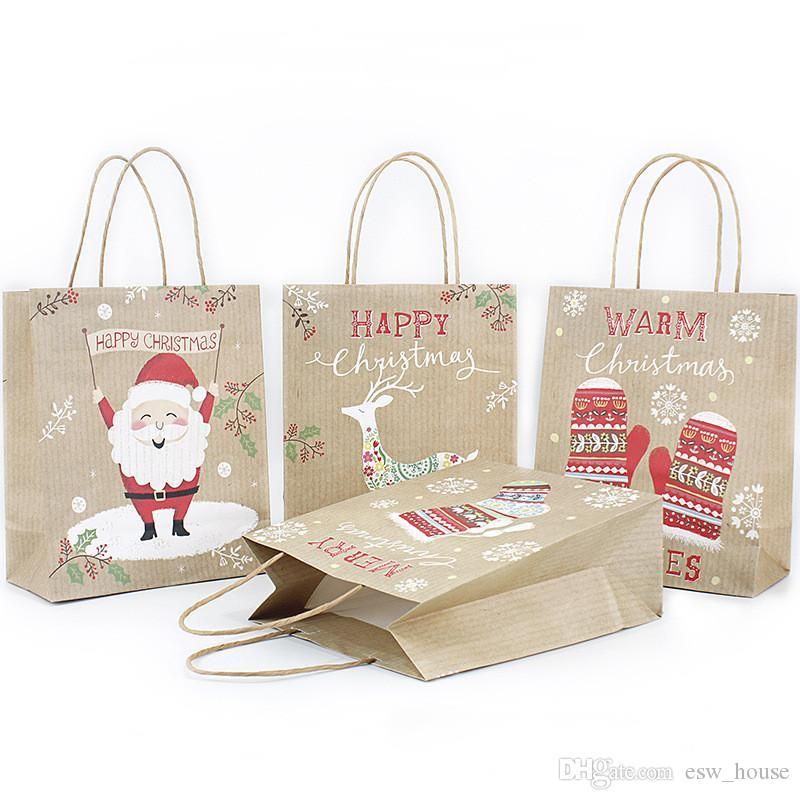 Christmas Paper Gift Bags Santa Sacks Kraft Paper Bag Kids Party