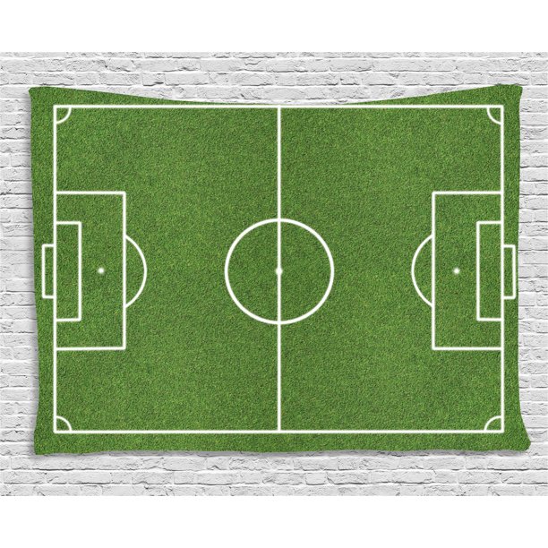 Teen Room Decor Tapestry Soccer Field Grass Motif Stadium Game
