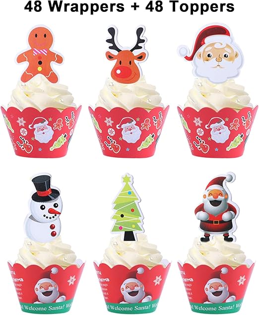Amazon Com Christmas Cupcake Wrappers And Toppers Kit 96pcs