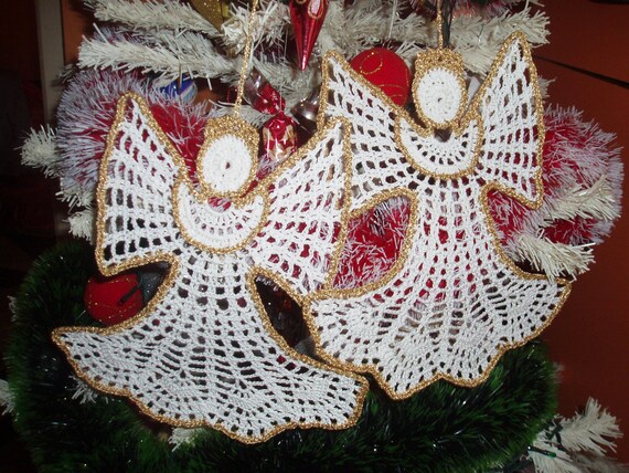 2 Angels Christmas Tree Ornaments Crochet Patterns Angels With Etsy