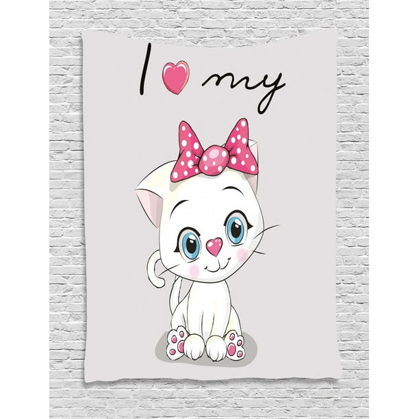 Kitten Tapestry Cute Cartoon Domestic White Cat Pink Cheeks