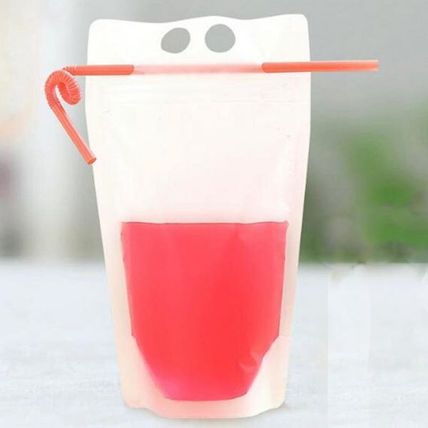 450ml Self Sealed Plastic Beverage Bag With Straw Water Bottles