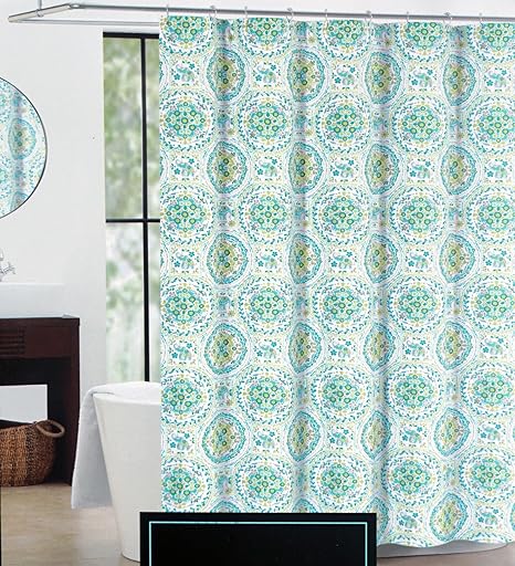 Amazon Com Cynthia Rowley Fabric Shower Curtain Green Blue