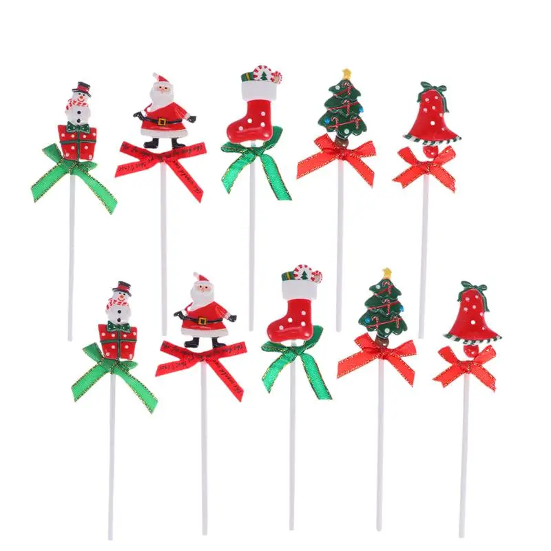 10pcs Christmas Themed Cake Toppers Cute Cake Picks Resin Cupcake