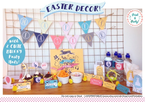 Easter Printable Party Kit Easter Bunny Home Decor Bunny Etsy