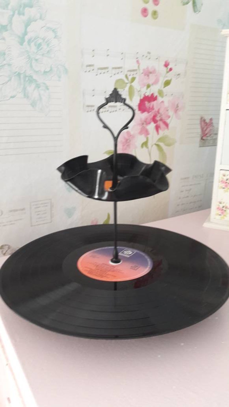 Vinyl 2 Tier Cup Cake Stand Music Themed Wedding Decor Retro Etsy