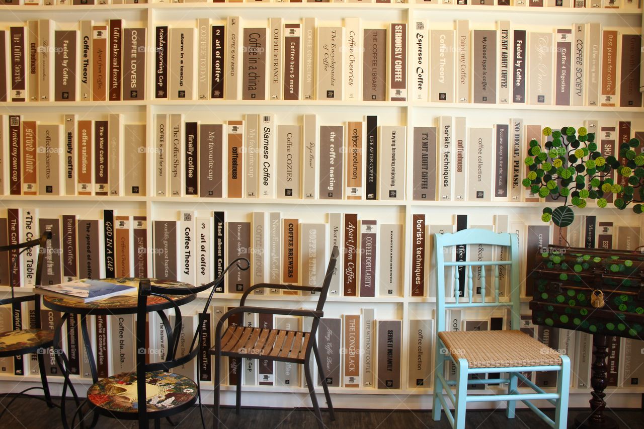 Bookshelf Wallpaper Decoration In The Coffee Shop Coffee Shops