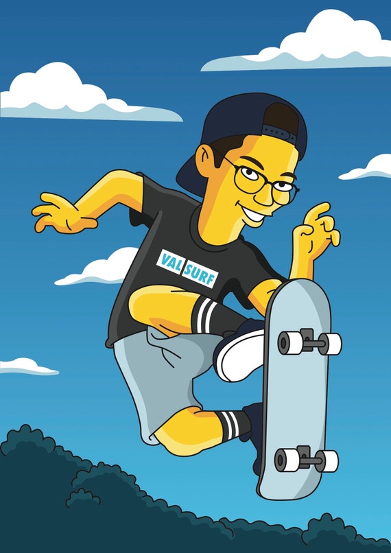 Skateboarder Gift Custom Portrait From Your Photo As Yellow Etsy
