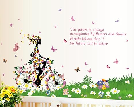 Amazon Com Bicycle Girl Fashion Personality Cute Diy Vinyl Wall