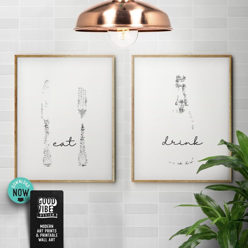 Set Of 2 Eat Drink Print Champagne Wall Art Printable Kitchen Etsy