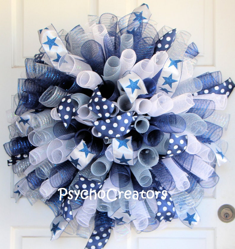 Xl Blue Curly Wreath Entryway Wall Decor Dallas Cowboys Etsy
