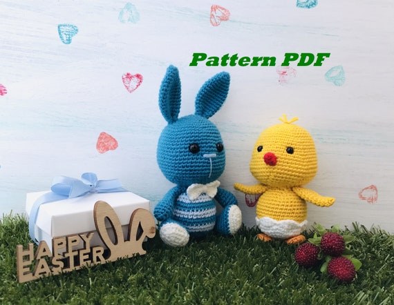 Easter Decoration Patterns Pdf Crochet Bunny And Chick Two Etsy