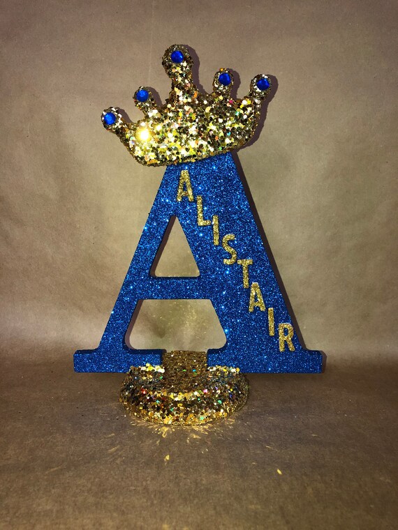 Mybbshower gold royal blue glitter crown cupcake toppers for first birthday party prince baby shower decorations pack of 24 by mybbshower in stock.