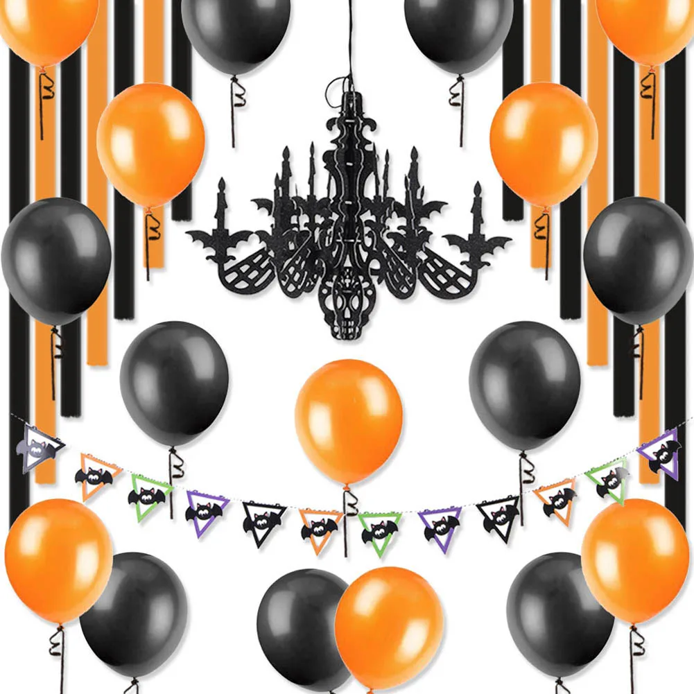 Halloween Decorations Kit Paper Fans Crepe Paper Streamers Black