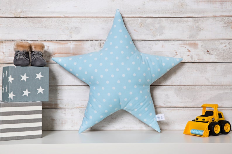 Boy Nursery Throw Pillow Star Cushion Light Blue And Gray Etsy