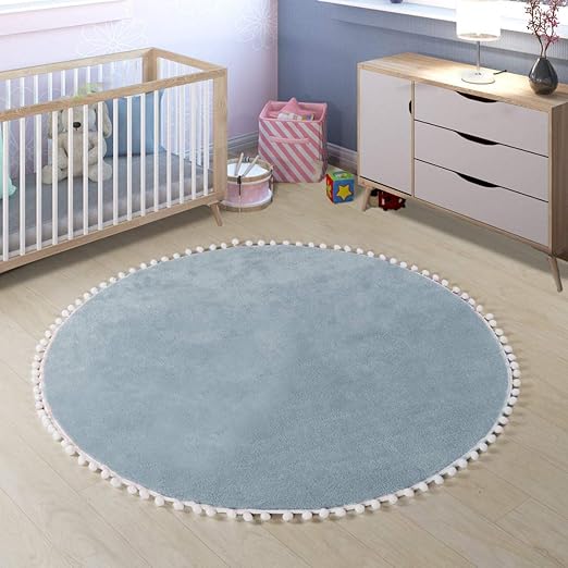 Amazon Com Leevan Faux Wool Round Rug Shaggy Nursery Rug Cute Pom