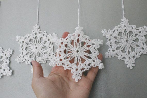 100 Handmade Snow White Crocheted Snowflakes Ornaments Christmas