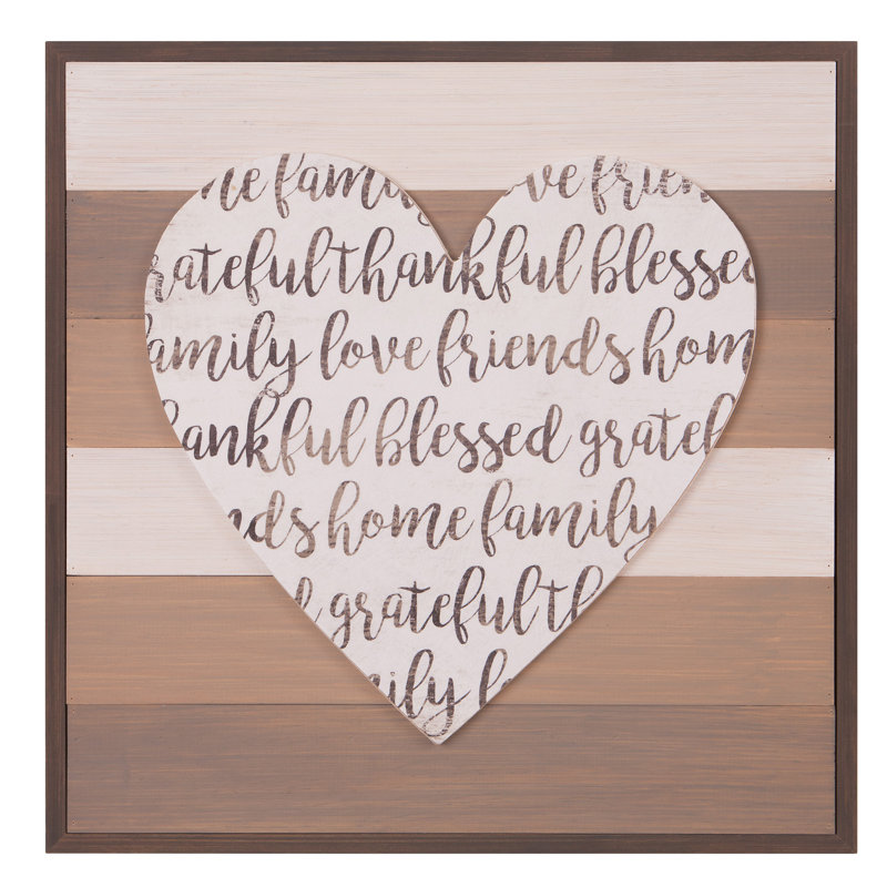 Winston Porter Thankful Grateful Blessed Cut Out Heart Wood Wall