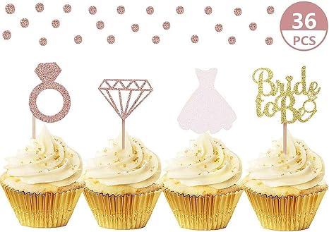 Donoter 36 Pcs Glitter Bride To Be Cupcake Toppers Bridal Shower