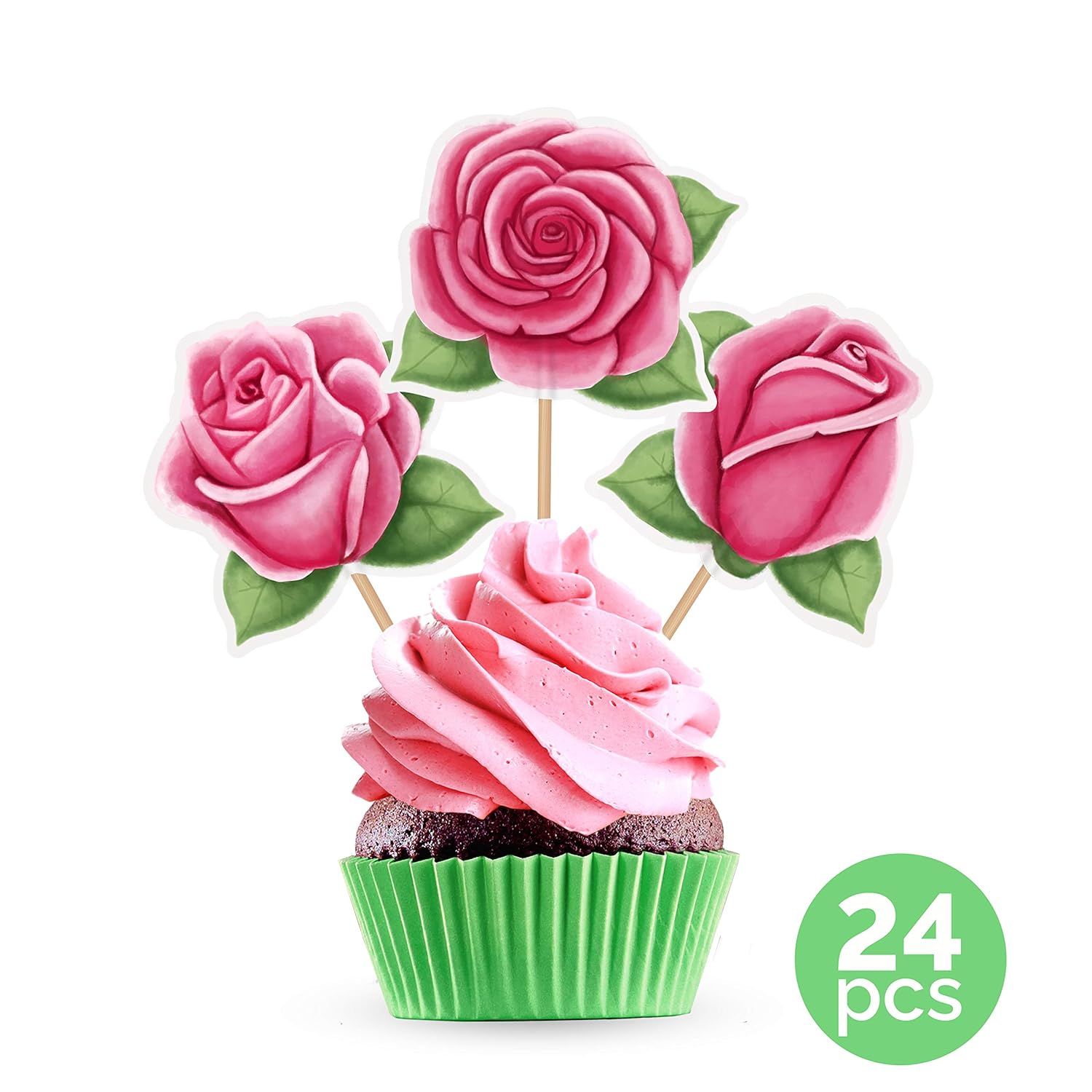 Floral Party Cupcake Toppers Rose Flower Theme Decorations