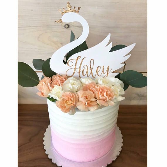 2020 Personalize Name Glitter Swan Birthday Cake Topper Wedding
