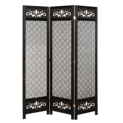 3 Panel Solid Wood Canvas Screen Room Divider Black Color With
