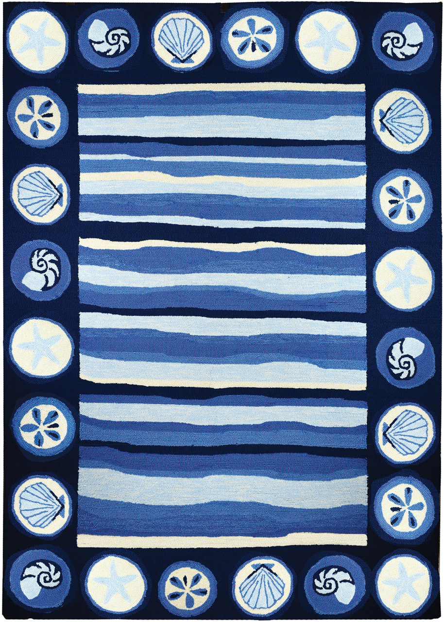 Coastal Stripes And Shells Indoor Outdoor Area Rug 5 X 7