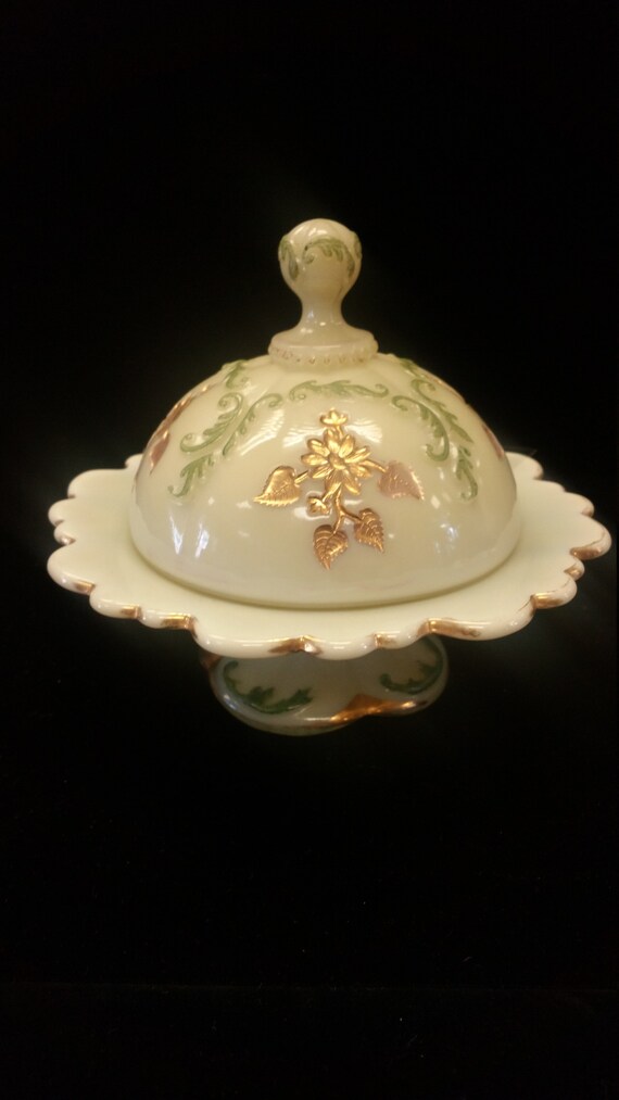 Northwood Custard Glass Footed Butter Dish With Lid Etsy