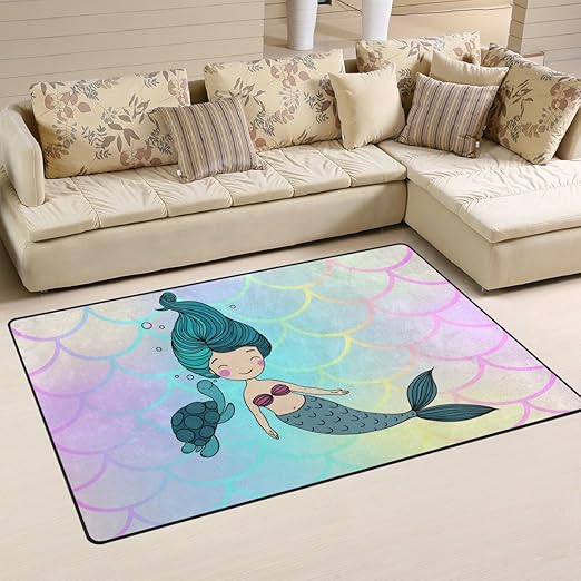 Amazon Com Welllee Area Rug Cartoon Sea Marine Siren Cute Mermaid