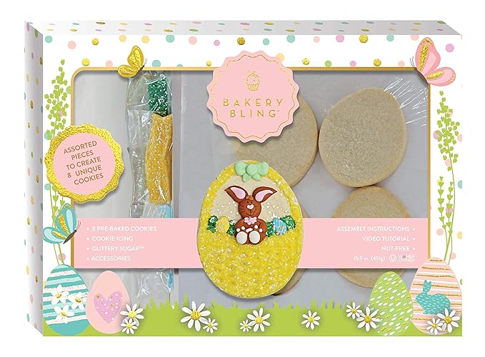 Includes 6 cookies 3 bags of royal icing sprinkles and instructions.