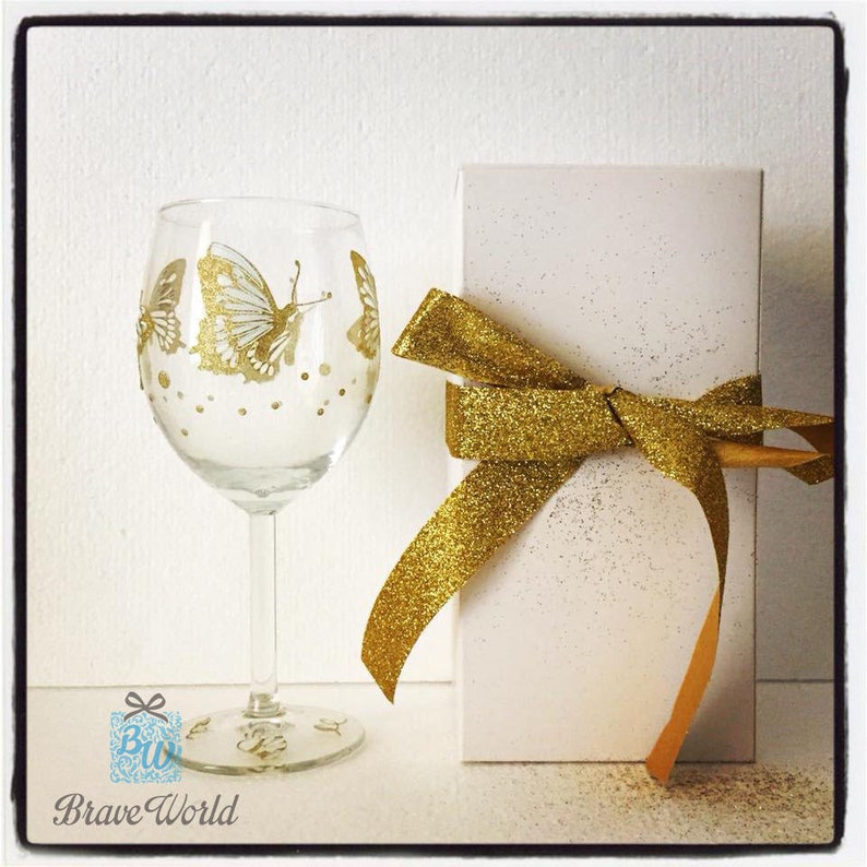 Hand Decorated Wine Glass Gold Butterflies Gold Butterflies Etsy