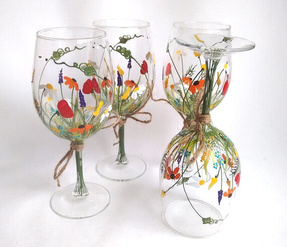 Wine Glasses Hand Painted Wine Glasses Keepsake Gift Etsy